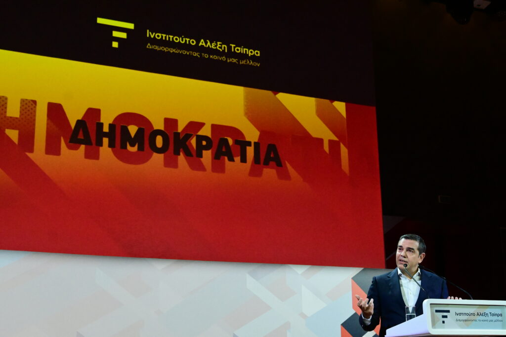 Ο Αλέξης Τσίπρας ξεκίνησε την ομιλία του ευχαριστώντας τους παρευρισκόμενους, τους προσκεκλημένους ομιλητές και ιδιαίτερα τον Βαγγέλη Βλάχο, αδελφό του αδικοχαμένου Βαϊου που έχασε τη ζωή του στα Τέμπη, καθώς και την Ελένη Κωστοπούλου, μητέρα του δολοφονηθέντος Ζακ. Σημείωσε ότι η ημερίδα του Ινστιούτου που είχαν προγραμματίσει εδώ και καιρό, είχε αποκτήσει εφιαλτική επικαιρότητα μετά τις αποκαλύψεις των τελευταίων ημερών, αλλά και μετά το ξέσπασμα των πολιτών απέναντι στην ατμόσφαιρα συγκάλυψης. Τόνισε ότι «αυτό το ξέσπασμα δημοκρατίας καθιστούσε τη συζήτηση ακόμα πιο επίκαιρη και την ανάγκη για απαντήσεις στο αίτημα των πολιτών για δικαιοσύνη και δημοκρατία ακόμα πιο επιτακτική».