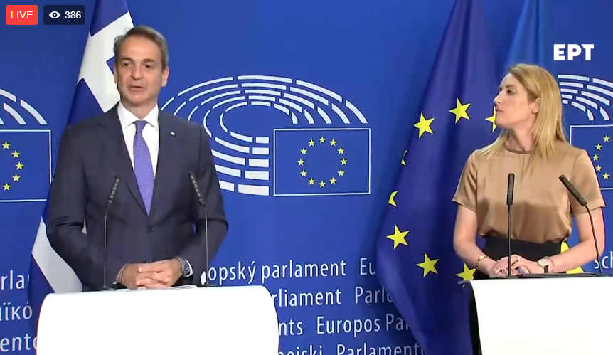 Κοινές δηλώσεις του Πρωθυπουργού Κυριάκου Μητσοτάκη με την Πρόεδρο του Ευρωπαϊκού Κοινοβουλίου Ρομπέρτα Μέτσολα