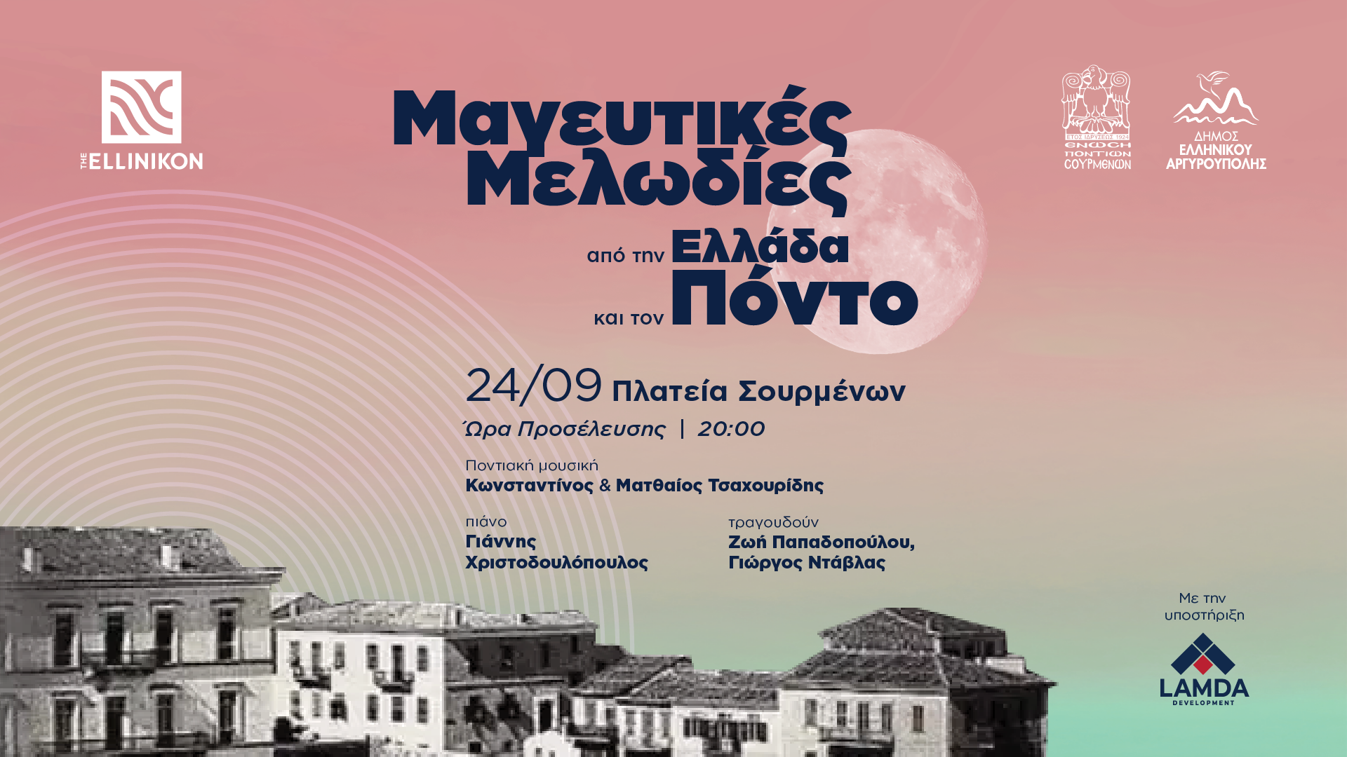 H LAMDA και το μεγάλο έργο αστικής ανάπλασης, The Ellinikon, μαζί με την Ένωση Ποντίων Σουρμένων και τον Δήμο Ελληνικού-Αργυρούπολης, διοργανώνουν μια μοναδική μουσική βραδιά και προσκαλούν το κοινό, την Τετάρτη 24 Σεπτεμβρίου, ώρα προσέλευσης 20:00, στην Πλατεία Σουρμένων στο Ελληνικό. Η είσοδος είναι ελεύθερη. Μια πλατεία γεμάτη φως, μουσικές και ρυθμούς. Μια βραδιά εμπνευσμένη από τον πλούτο της ελληνικής μουσικής παράδοσης, με την ποντιακή ψυχή να ξεχωρίζει και να δίνει τον παλμό, υφαίνοντας ένα μουσικό χαλί γεμάτο μνήμες, εικόνες και συγκίνηση. Στη σκηνή, οι διεθνώς αναγνωρισμένοι Κωνσταντίνος και Ματθαίος Τσαχουρίδης θα ζωντανέψουν τον ήχο της ποντιακής λύρας, παντρεύοντάς τον με τη δύναμη της ανθρώπινης φωνής και τις σύγχρονες ενορχηστρώσεις. Μαζί τους o Γιάννης Χριστοδουλόπουλος στο live πιάνο και η Ζωή Παπαδοπούλου και ο Γιώργος Ντάβλας, οι οποίοι με τις αισθαντικές φωνές τους θα ταξιδέψουν το κοινό μέσα από τραγούδια που ενώνουν εποχές και τόπους. Τη βραδιά θα πλαισιώσει το χορευτικό συγκρότημα της Ένωσης Ποντίων Σουρμένων, που με ρυθμό και πάθος θα μεταφέρει στο κοινό εικόνες, ήχους και μνήμες που παραμένουν ζωντανές. Η συναυλία διοργανώνεται από τη LAMDA, η οποία υλοποιεί το έργο της ανάπλασης του Ελληνικού με σεβασμό στην ιστορία και την πολιτισμική ταυτότητα της περιοχής. Αναγνωρίζοντας και τιμώντας τη διαχρονική παρουσία του ποντιακού ελληνισμού στον τόπο, στηρίζει πρωτοβουλίες που αναδεικνύουν την παράδοση και διατηρούν τη συλλογική μνήμη. Σε συνεργασία με τοπικούς συλλόγους και φορείς, όπως η Ένωση Ποντίων Σουρμένων, συμβάλλει ενεργά στη διατήρηση της πολιτισμικής κληρονομιάς, συνδέοντας το παρόν με την ιστορική πορεία του τόπου. Η βραδιά αυτή αποτελεί ακόμη μία από τις πολιτιστικές πρωτοβουλίες της LAMDA, η οποία συνεχίζει σταθερά να επενδύει στον πολιτισμό και την ανάδειξη αγαπημένων χώρων – προορισμών της Αττικής. Μέσα από εκδηλώσεις που ενώνουν την τέχνη με τον δημόσιο χώρο, δημιουργούνται ανοιχτές εμπειρίες για όλους, που φέρνουν στο προσκήνιο τον πολιτισμό, την ιστορία και τη ζωντανή ταυτότητα του τόπου. Μάθετε περισσότερα στο site του The Ellinikon και απολαύστε ένα μουσικό ταξίδι που δεν πρέπει να χάσετε! Είσοδος ελεύθερη!