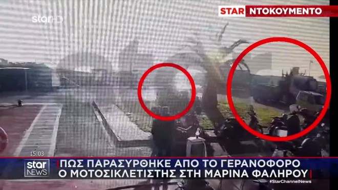 Ένα συγκλονιστικό βίντεο ντοκουμέντο έρχεται στο φως της δημοσιότητας από την παράσυρση οδηγού μοτοσικλέτας από γερανοφόρο όχημα στη Μαρίνα Φαλήρου την περασμένη Παρασκευή 10 Ιανουαρίου.