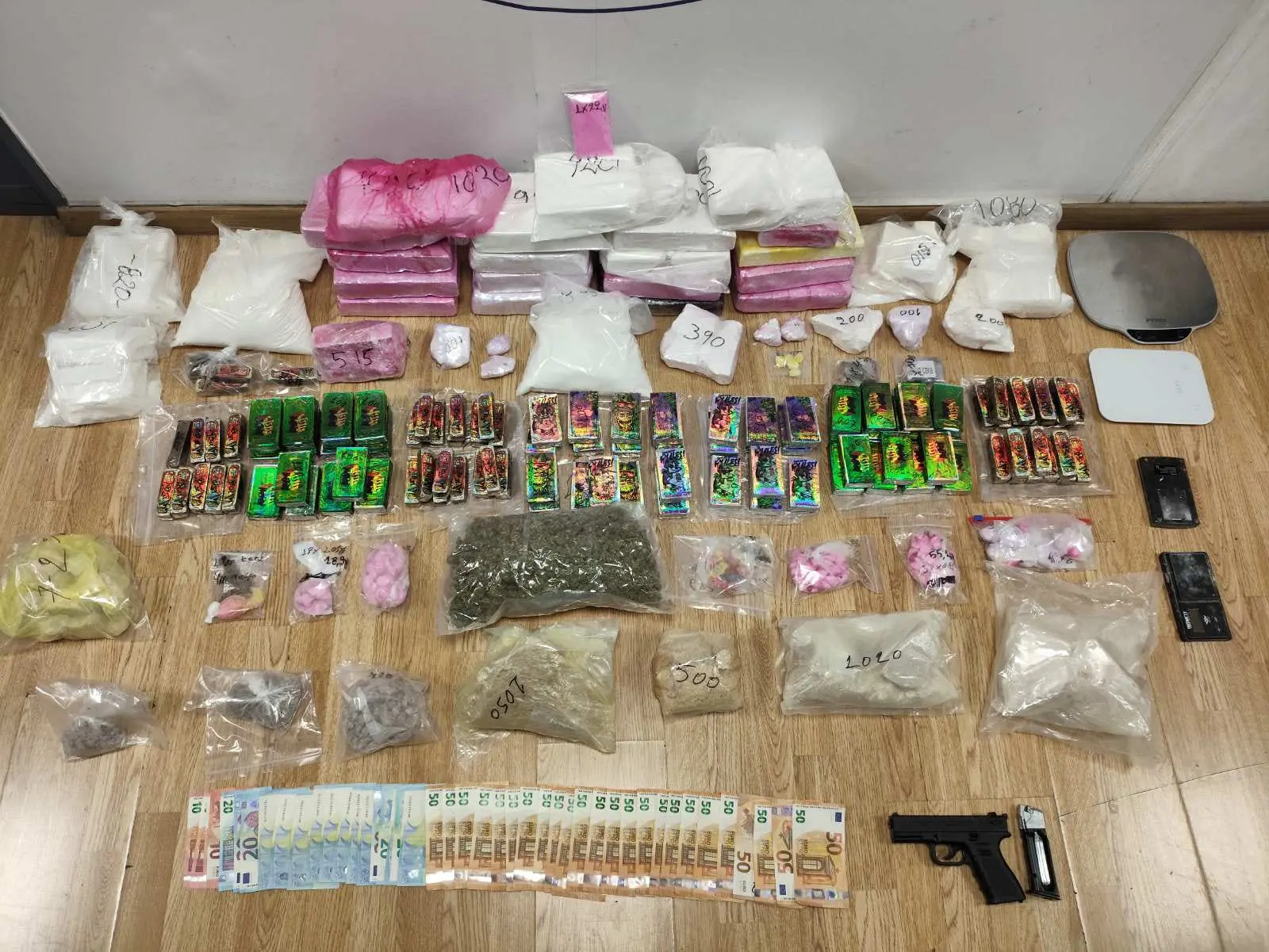 Ακολούθησε επιχείρηση για τον τερματισμό της δράσης τους, κατά την οποία πραγματοποιήθηκαν έρευνες στις οικίες τους, σε όχημα αλλά και σε χώρο- «καβάτζα», που χρησιμοποιούσε ο 38χρονος στο Πέραμα, όπου εντοπίστηκε μεγάλη ποσότητα κοκαΐνης, κατεργασμένης κάνναβης (σοκολάτα) και MDMA.