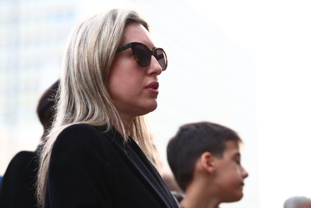 Η μικρότερη κόρη του Πόπη γονάτισε μπροστά στο πανό με τον πατέρα της, άφησε λουλούδια και ξέσπασε σε κλάματα.