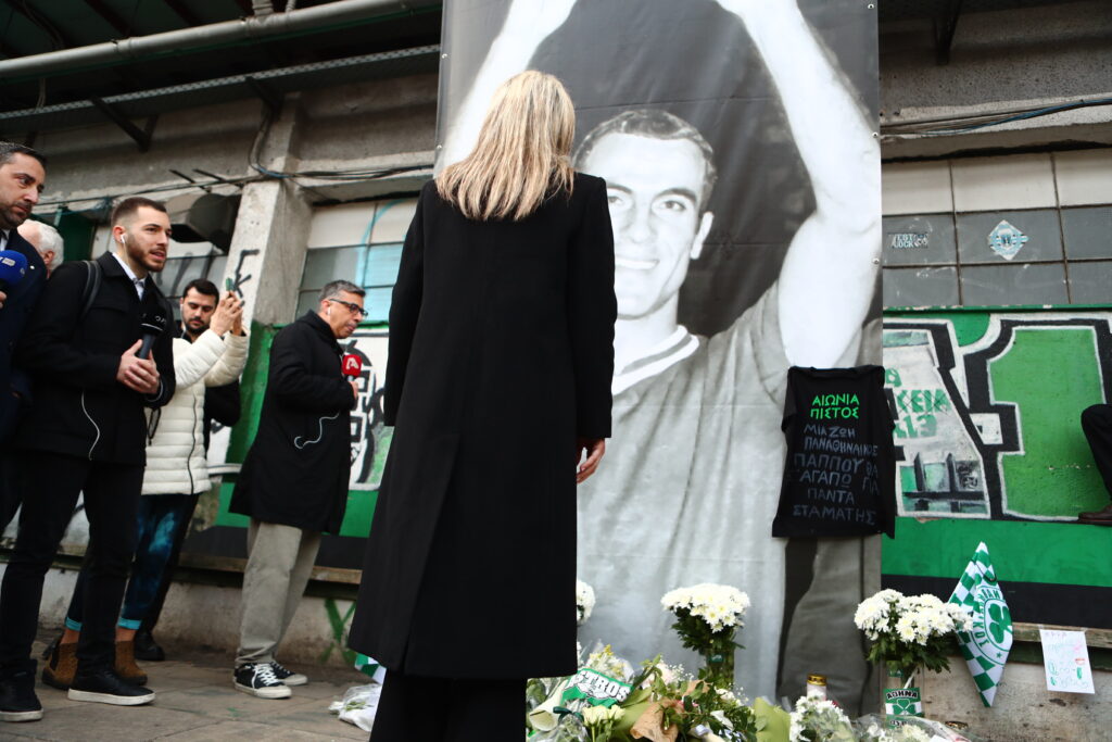 Μέσα σε κλίμα έντονης συγκίνησης στα μεγάφωνα του γηπέδου ακούστηκε ο ύμνος του Παναθηναϊκού, ενώ στα μάτριξ ήταν η φωτογραφία του από την εποχή που μεγαλουργούσε στα γήπεδα.