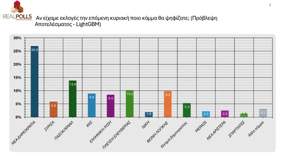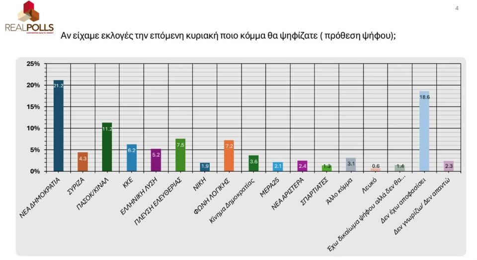 Πρώτο κόμμα η ΝΔ, τρίτο η Πλεύση Ελευθερίας