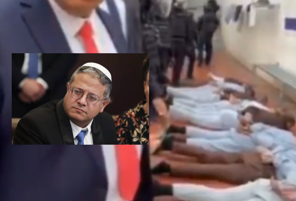 Israeli National Security Minister Itamar Ben Gvir is seen abusing Palestinian prisoners in one of the occupation’s prisons.
