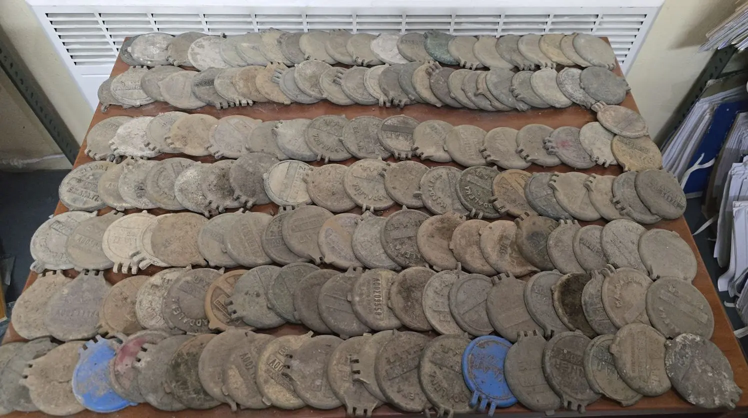 Κατά τον έλεγχο σε σακίδιο που έφερε βρέθηκαν συνολικά και κατασχέθηκαν 140 μεταλλικά καπάκια ρολογιών ύδρευσης.