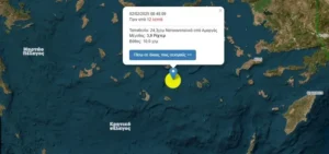 Τέλος, πριν τις 07:30 – Νέος σεισμός καταγράφηκε 24 χιλιόμετρα νοτιοδυτικά της Αρκεσίνης Αμοργού, με εστιακό βάθος 6,3 χιλιομέτρων.