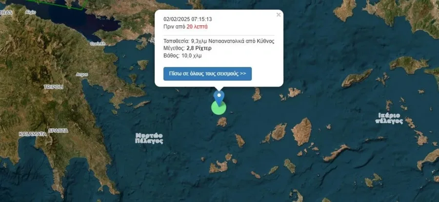 Περίπου στις 07:10 – Νέος σεισμός 25 χιλιόμετρα νότια νοτιοανατολικά της Αρκεσίνης Αμοργού, με εστιακό βάθος 10,6 χιλιομέτρων.