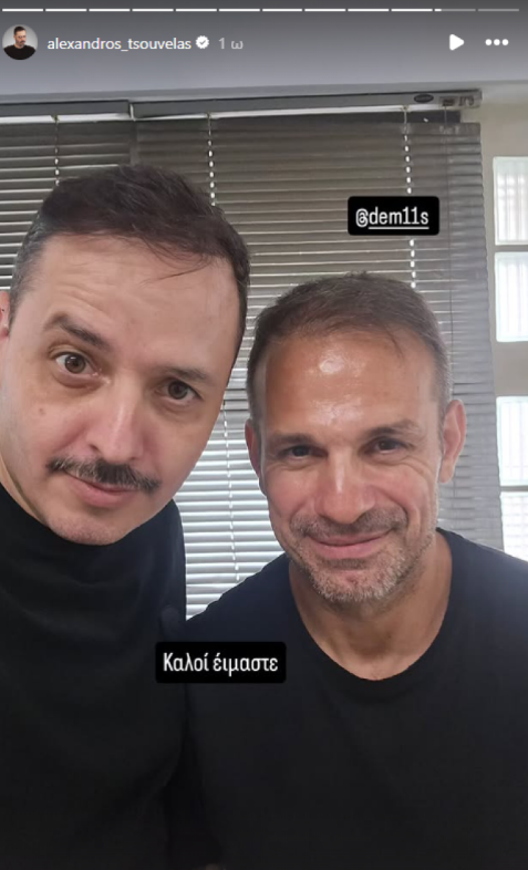 Στο στιγμιότυπο που δημοσίευσε ο Αλέξανδρος Τσουβέλας σε story στον προσωπικό του λογαριασμό στο Instagram, εμφανίζεται να ποζάρει δίπλα στον πρώην ποδοσφαιριστή, ενώ πάνω στη φωτογραφία αναφέρεται: «Καλοί είμαστε».