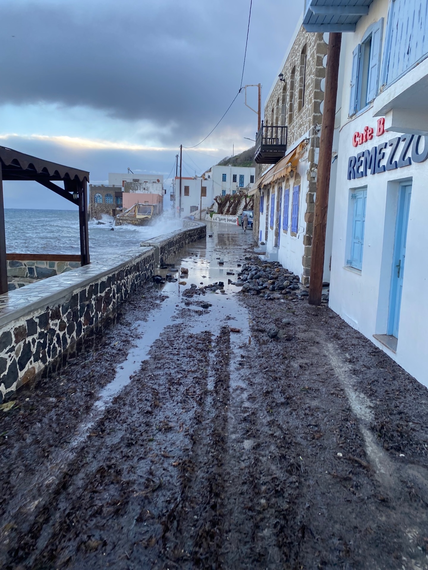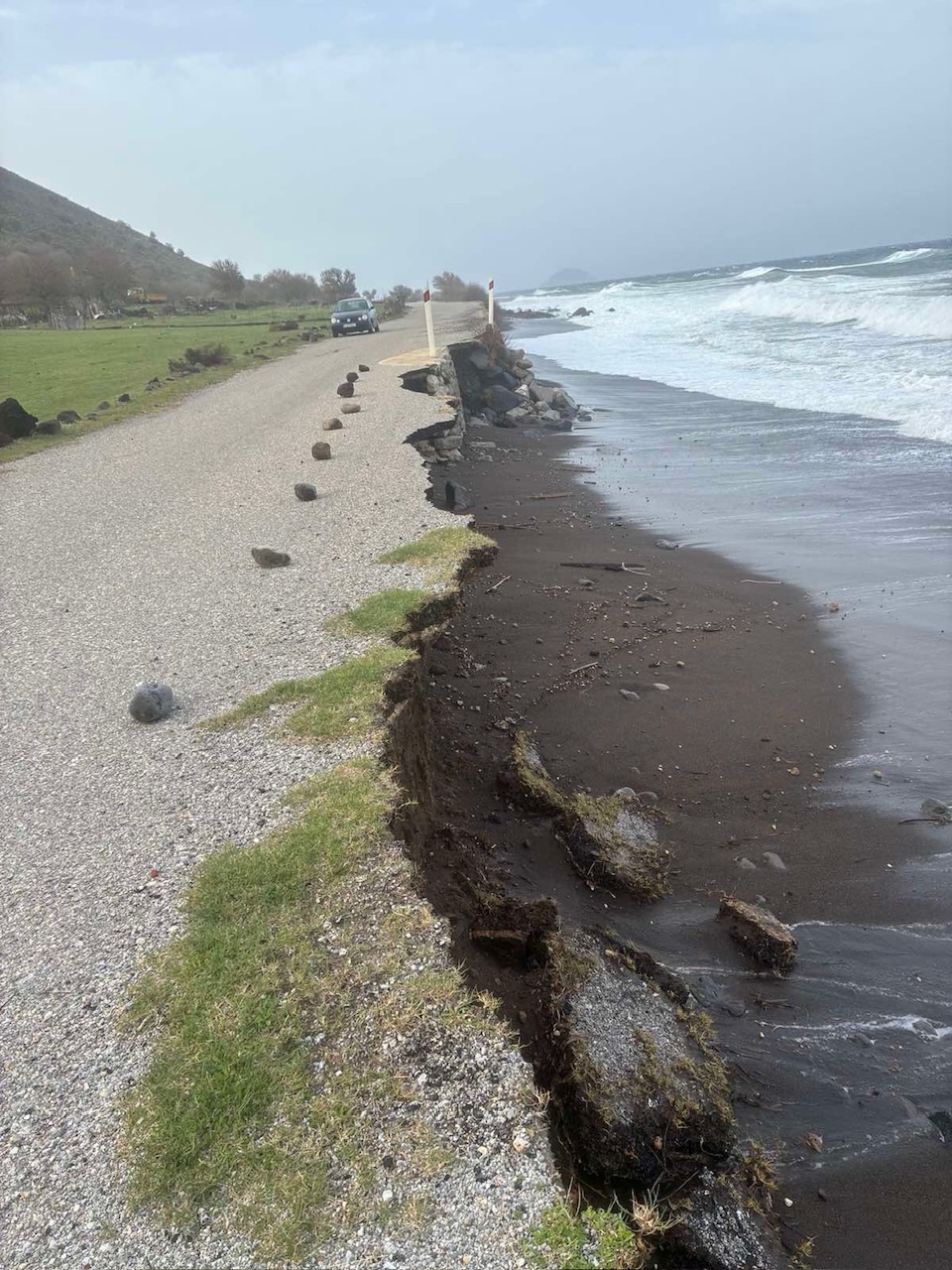 – Υποσκαφή κρηπιδωμάτων και καταστροφή τοιχίου στο παραλιακό μέτωπο Μανδρακίου