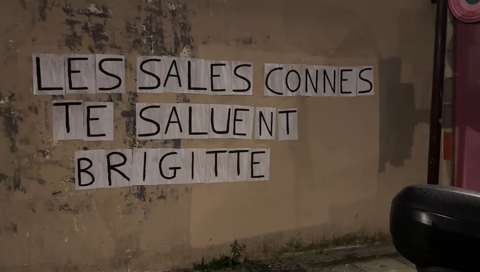 Η δήλωση αυτή προκάλεσε αμέσως θύελλα αντιδράσεων, με τα μέλη της NousToutes να δίνουν τη δική τους δημόσια απάντηση στους δρόμους του Παρισιού. Χθες το βράδυ, στους δρόμους εμφανίστηκαν μηνύματα όπως: «Οι βρωμιάρες σκύλες σε χαιρετούν Μπριζίτ» και «Απόρριψη αιτήματος δε σημαίνει αθώωση, ξαναμάθε τα μαθήματά σου Μπριζίτ».