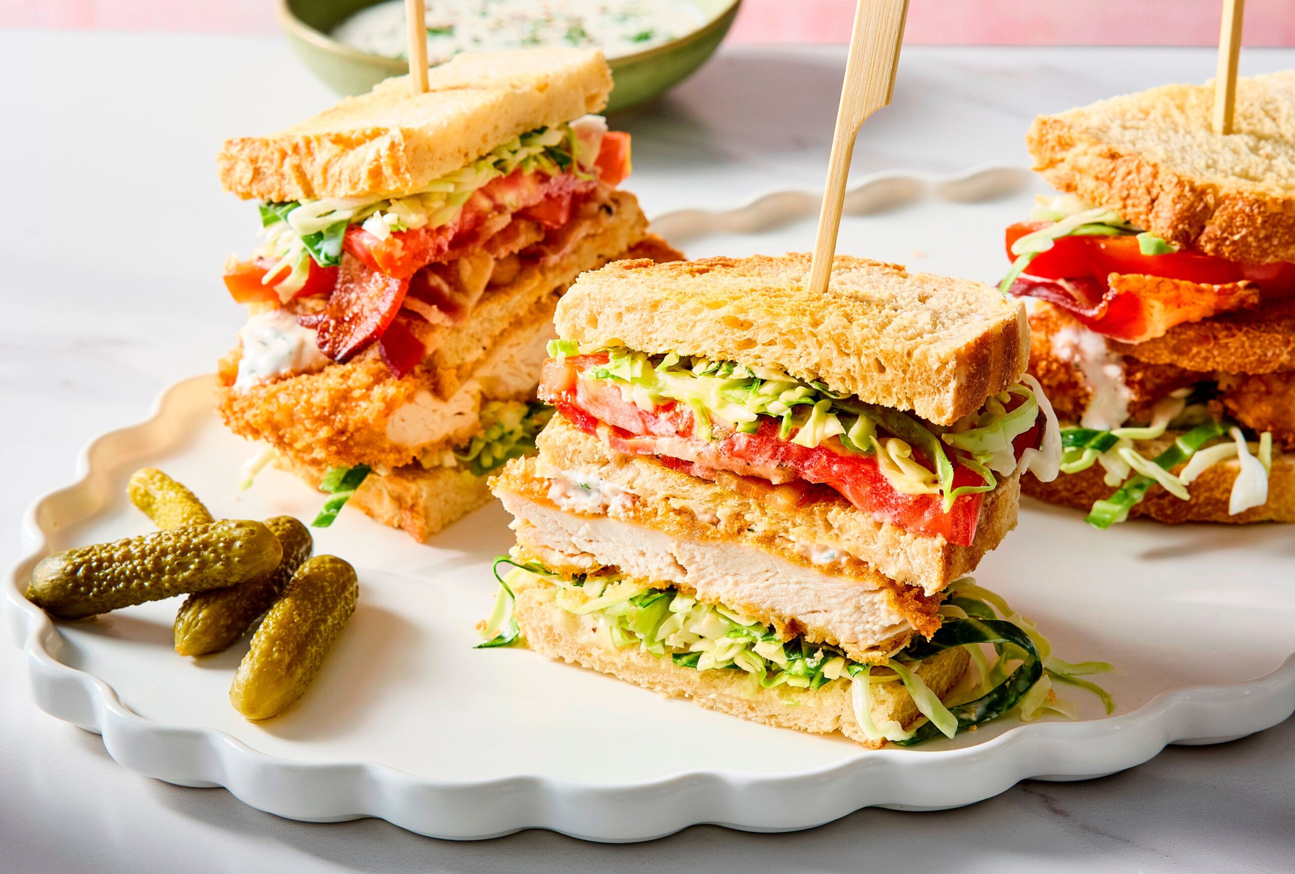 Φρυγανίζετε ψωμί του τοστ. Απλώνετε μαγιονέζα, βάζετε γαλοπούλα ή μπέικον (ή και τα δύο), τυρί, ντομάτα, μαρούλι. Κλείνετε σε «τριώροφο», καρφώνετε με οδοντογλυφίδες, κόβετε σε τρίγωνα. Συνοδεύετε με πατάτες φούρνου ή chips. Σε μια βροχερή Δευτέρα, είναι αγκαλιά σε πιάτο.
