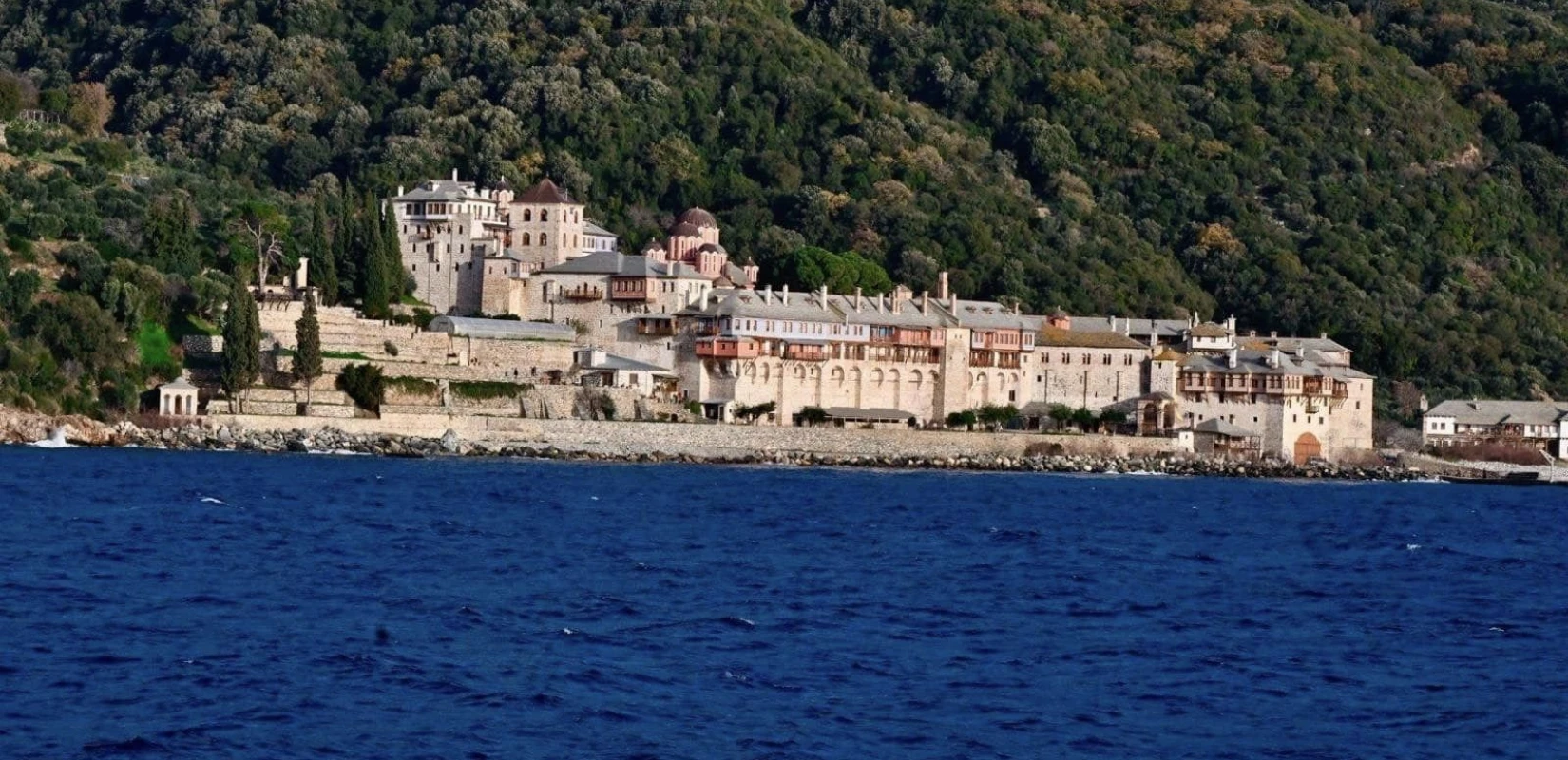 Θεωρούμενο από τους πιστούς ως «το Περιβόλι της Παναγίας», ο τόπος αυτός των 330 τ.χλμ, όπου απαγορεύεται η είσοδος στις γυναίκες, φιλοξενεί 20 Μονές και περίπου 2.000 μοναχούς. Εδώ και έναν χρόνο, λειτουργεί, επίσης, ως καταφύγιο για Ουκρανούς στρατιώτες που αναζητούν εσωτερική ειρήνη.