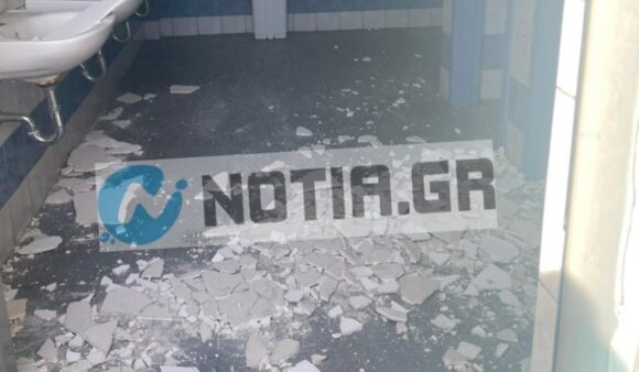 Στο 1ο Δημοτικό Σχολείο, κατέρρευσε τμήμα της οροφής στις τουαλέτες κατά τη διάρκεια των μαθημάτων.
