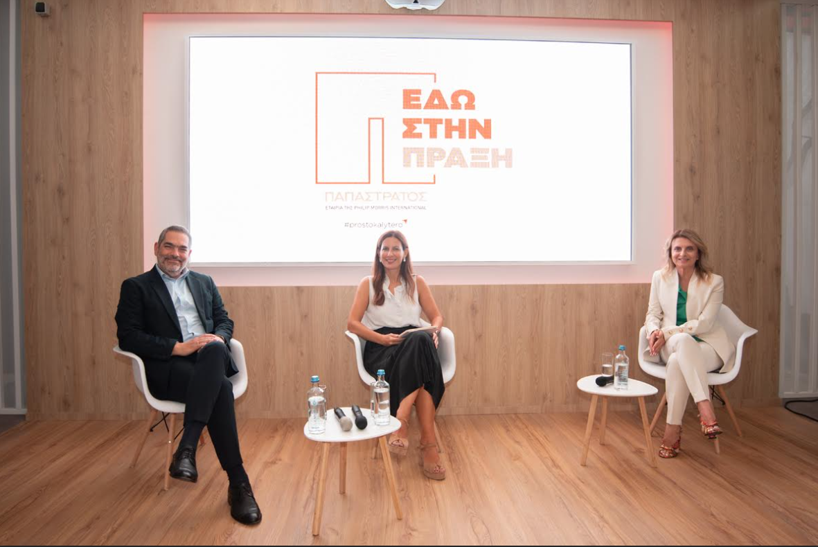 Στο πλαίσιο της συζήτησης, τα δύο στελέχη της Παπαστράτος είχαν την ευκαιρία να μιλήσουν για την αρχή της μείωση της βλάβης, ως στρατηγική που στοχεύει στη μείωση των αρνητικών συνεπειών από επικίνδυνες συμπεριφορές χωρίς να κρίνει τις ατομικές επιλογές, αποτελώντας μια σημαντική παρέμβαση για τη δημόσια υγεία. Ακολουθώντας την αρχή αυτή, η Παπαστράτος και η μητρική της εταιρεία, Philip Morris International (PMI), έχουν επενδύσει πάνω από 14 δισεκ. δολάρια, τα τελευταία 15 χρόνια, στην επιστήμη και την καινοτομία, με στόχο την ανάπτυξη καλύτερων προϊόντων από το συμβατικό τσιγάρο. Σήμερα, περισσότεροι από 1.400 επιστήμονες, από διαφορετικά πεδία, διεξάγουν έρευνα πάνω σε αυτά τα προϊόντα συμβάλλοντας στην επιστημονική τεκμηρίωσή τους. Παράλληλα, η εταιρεία διαθέτει στο χαρτοφυλάκιο των προϊόντων της μία ποικιλία διαφορετικών κατηγοριών, όπως θερμαινόμενα προϊόντα καπνού, ηλεκτρονικά τσιγάρα και σακουλάκια ή pouches νικοτίνης, δίνοντας τη δυνατότητα στους ενήλικους καπνιστές, που δεν διακόπτουν το κάπνισμα, να επιλέξουν το προϊόν που θα τους βοηθήσει να αφήσουν πίσω τους το τσιγάρο.