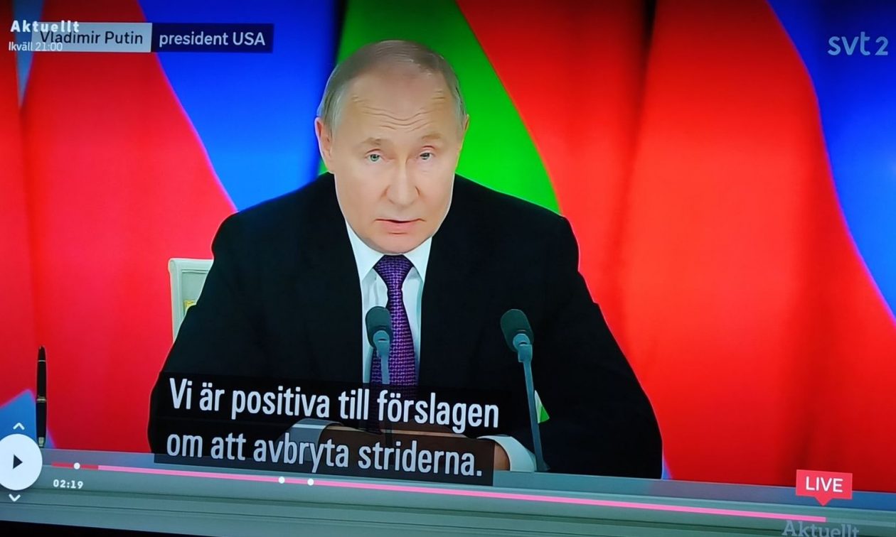 Τα social media κατακλύστηκαν από το ακόλουθο καρέ από εκπομπή στο σουηδικό τηλεοπτικό κανάλι SVT αφιερωμένη στον Βλαντιμίρ Πούτιν. Σε αυτήν ο Ρώσος ηγέτης… χρίστηκε Πρόεδρος των Ηνωμένων Πολιτειών της Αμερικής.