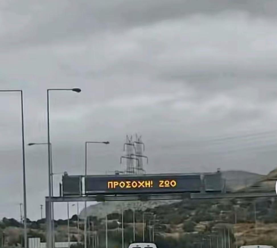 Μία πινακίδα της Αττικής Οδού, έδωσε τροφή για σκέψη στους οδηγούς αλλά και όσους την είδαν σε δημοσιεύσεις που αναρτήθηκαν στα social media. Ένα ζώο που εισήλθε στον αυτοκινητόδρομο, σήμανε συναγερμό στις υπηρεσίες της ΑΟ και πολύ ορθά άναψαν οι φωτεινές πινακίδες με τη σχετική σήμανση προς αποφυγή τυχόν ατυχήματος.