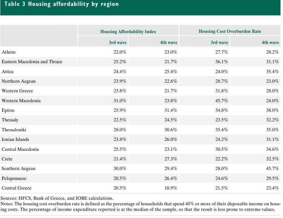 Το βασικό εργαλείο ανάλυσης ήταν ένας δείκτης προσιτότητας, ο οποίος συγκρίνει το συνολικό στεγαστικό κόστος (ενοίκιο, δάνεια, ΔΕΚΟ, τέλη) με το διαθέσιμο εισόδημα. Η εικόνα που προκύπτει είναι δυσμενής, με σαφή γεωγραφική διαφοροποίηση.