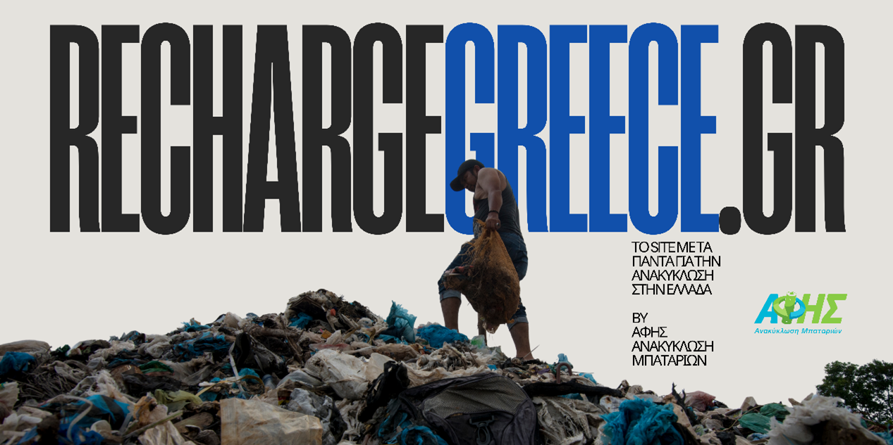Η ΑΦΗΣ, η ηγέτιδα στην ανακύκλωση μπαταριών στην Ελλάδα, κάνει το επόμενο μεγάλο βήμα για το μέλλον του πλανήτη μας και παρουσιάζει την πλατφόρμα Recharge Greece by ΑΦΗΣ: το νέο σημείο αναφοράς για ό,τι αφορά στην ανακύκλωση στη χώρα μας.