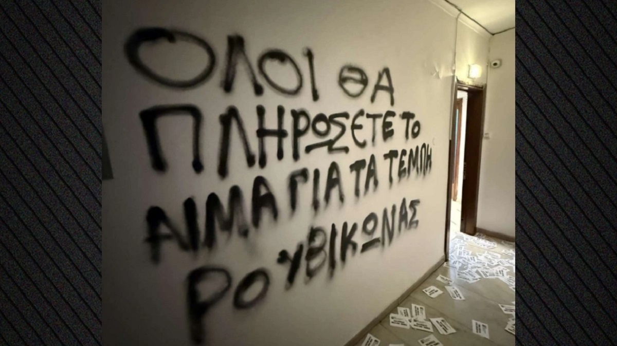 Ρουβίκωνας: Παρέμβαση με τρικάκια, μπογιές και μηνύματα οργής στο γραφείο του Στράτου Σιμόπουλου