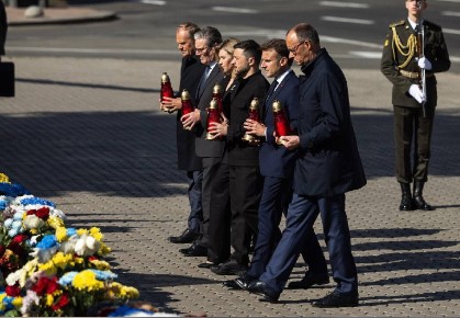 Ο Γάλλος πρόεδρος Εμανουέλ Μακρόν, ο Γερμανός καγκελάριος Φρίντριχ Μερτς και ο Βρετανός πρωθυπουργός Κιρ Στάρμερ έφτασαν σήμερα το πρωί στο Κίεβο προκειμένου να εκφράσουν από κοινού με τον Πολωνό πρωθυπουργό Ντόναλντ Τουσκ τη στήριξή τους προς την Ουκρανία και να ζητήσουν από τη Ρωσία να δεχθεί “πλήρη και άνευ όρων” εκεχειρία 30 ημερών.