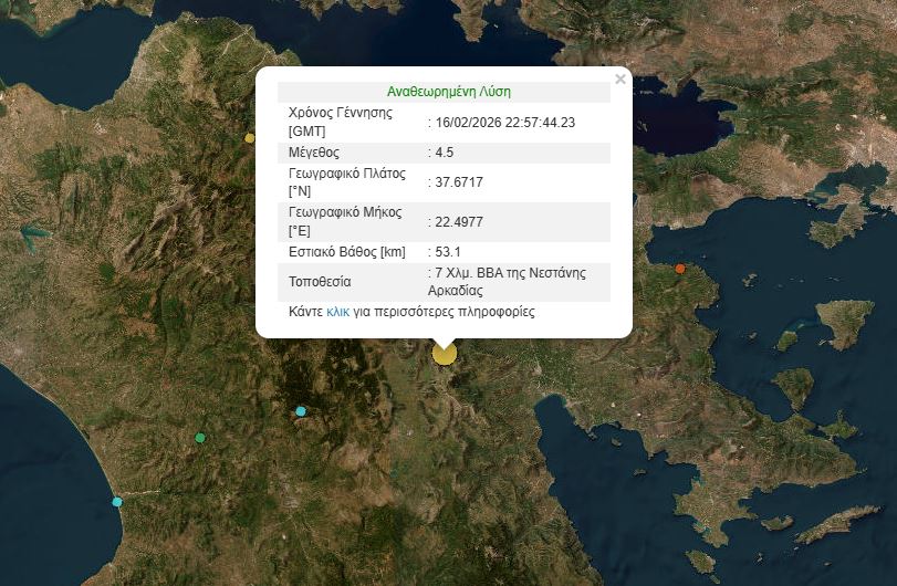 Σεισμός 4,5 Ρίχτερ στην Αρκαδία – Αισθητή και στην Αττική