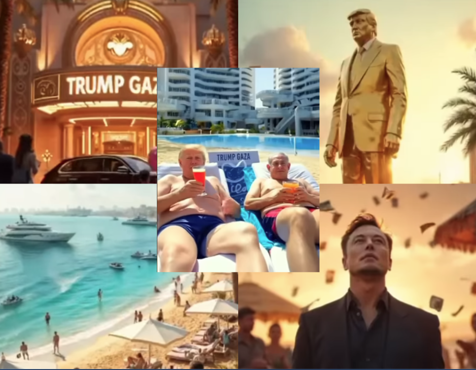 Μετά τις διακηρύξεις του ότι οι ΗΠΑ «θα αναλάβουν» τον παλαιστινιακό θύλακο, θα τον ισοπεδώσουν και θα τον ανοικοδομήσουν, ο Τραμπ παρουσίασε στον προσωπικό του λογαριασμό @raldonaldtrump το βίντεο με τα σχέδιά του, που δείχνουν την κατεστραμμένη Γάζα να μετατρέπεται σε μια λωρίδα γης με πλούσια νυχτερινή ζωή, πολυτελή ξενοδοχεία, χορούς της κοιλιάς, καταστήματα, καφετέριες, μια υπέροχη παραλία και χρυσά αγάλματά του!