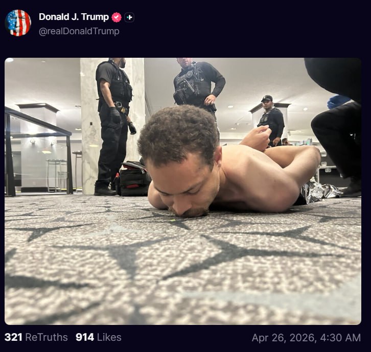 Video shows the alleged shooter on the ground with U.S. Secret Service at the Washington Hilton following the shooting at the White House Correspondents’ Dinner. pic.twitter.com/SNizYsccVs
