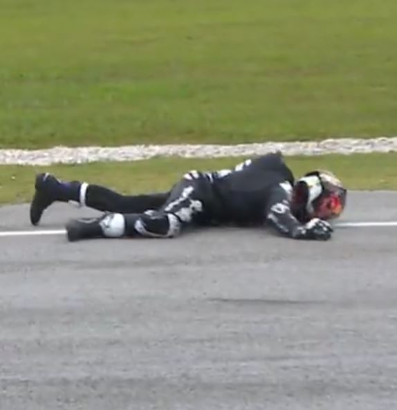 Ο Ισπανός πρωταθλητής «έσκασε» στο έδαφος με το κεφάλι και από την σύγκρουση έσπασε η ζελατίνα του κράνους του.