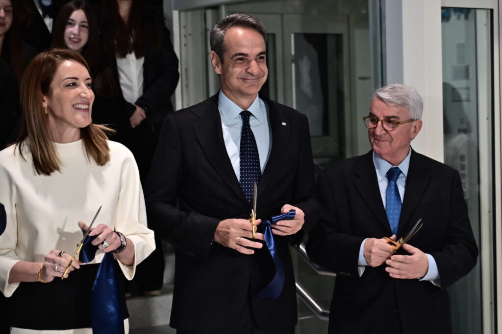 Στο Αρσάκειο Μέγαρο για τα εγκαίνια του κέντρου Europa Experience βρέθηκαν το πρωί της Παρασκευής ο πρωθυπουργός Κυριάκος Μητσοτάκης και η πρόεδρος του Ευρωπαϊκού Κοινοβουλίου, Ρομπέρτα Μέτσολα.