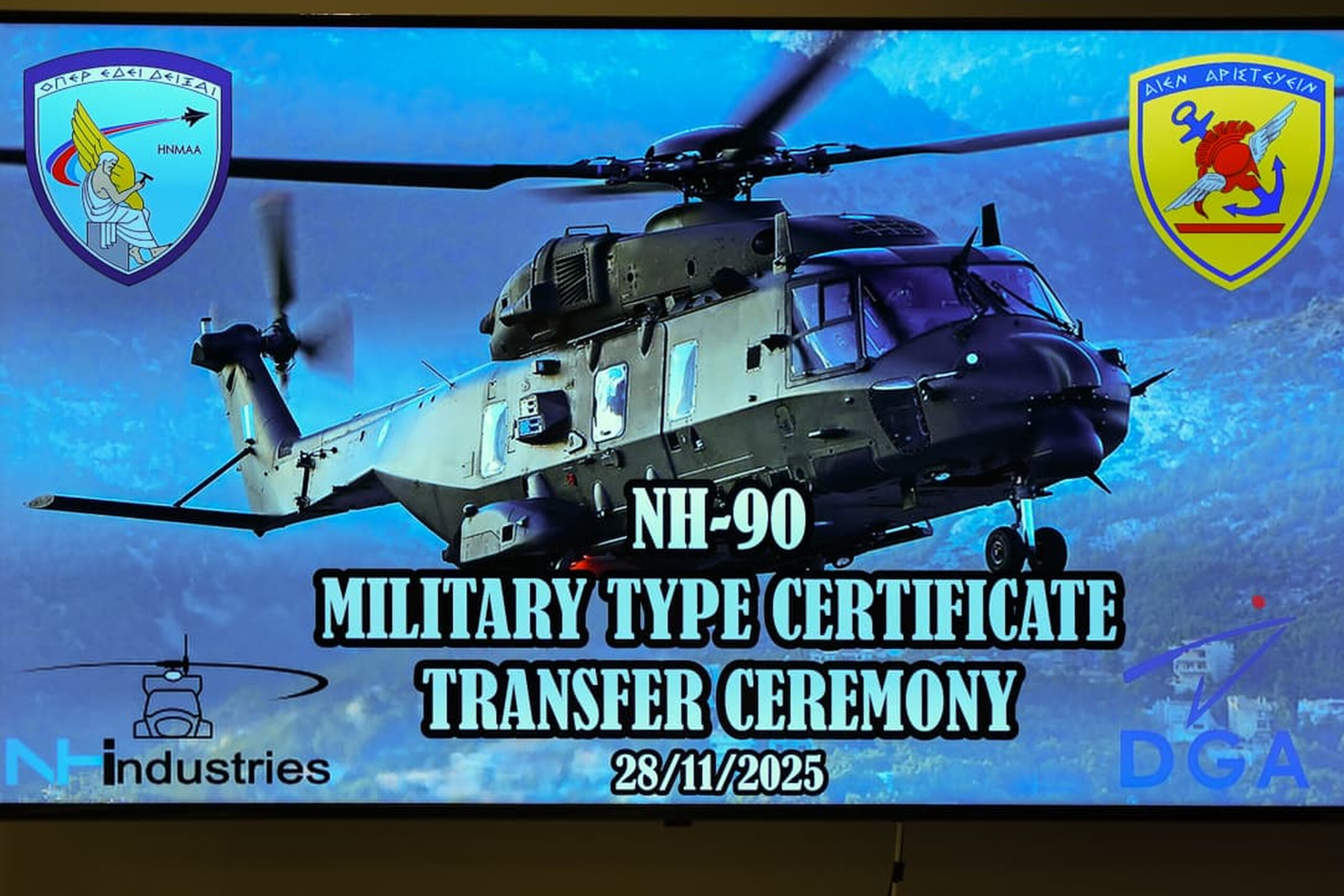 Με τη χθεσινή απονομή πιστοποιητικού στρατιωτικού τύπου (Military Type Certificate, MTC) τα ελικόπτερα NH90 εντάχθηκαν στις Ένοπλες Δυνάμεις.