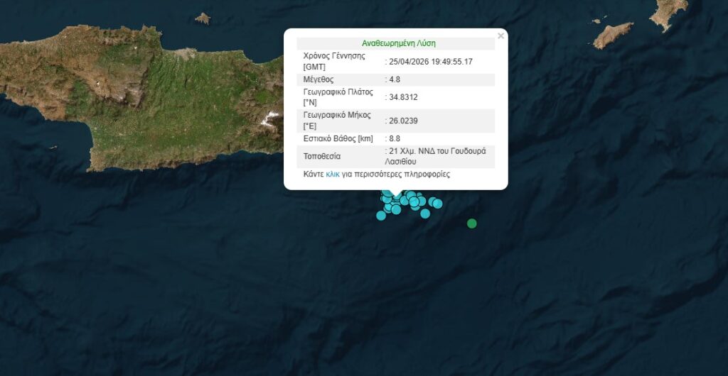 Στον χορό των Ρίχτερ η Κρήτη: Νέος σεισμός 4,8 R ανοιχτά του Λασιθίου
