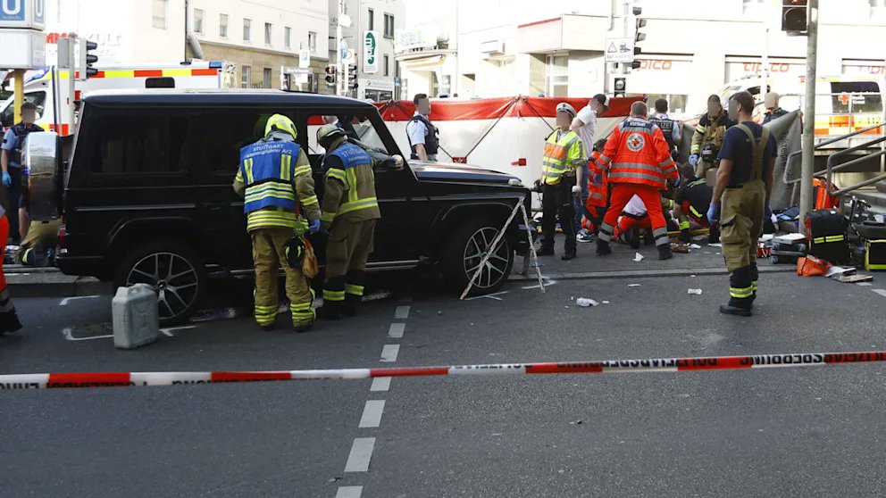 🇩🇪 Police report a man crashed his car into a crowd in central Stuttgart, injuring three people.