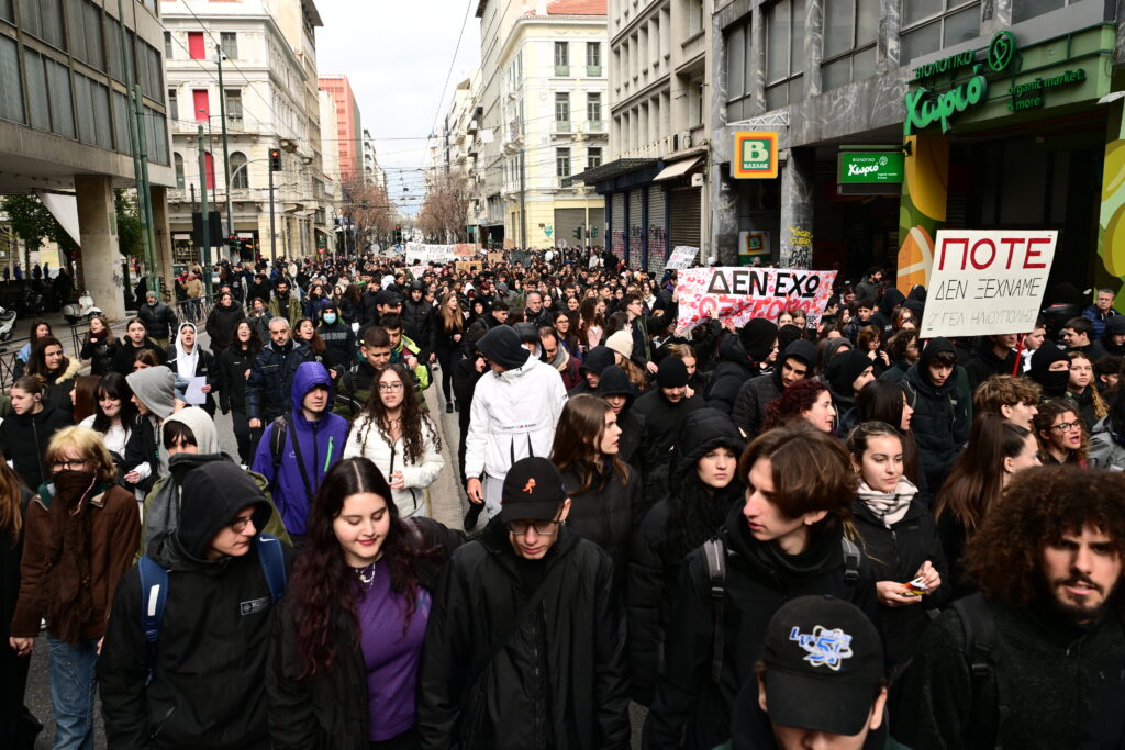 Με αίτημα την απόδοση δικαιοσύνης για το δυστύχημα των Τεμπών, πλήθος μαθητών και φοιτητών πραγματοποίησαν πορεία στο κέντρο της Αθήνας. Νωρίτερα, πραγματοποιήθηκε πανεκπαιδευτικό συλλαλητήριο στα Προπύλαια.