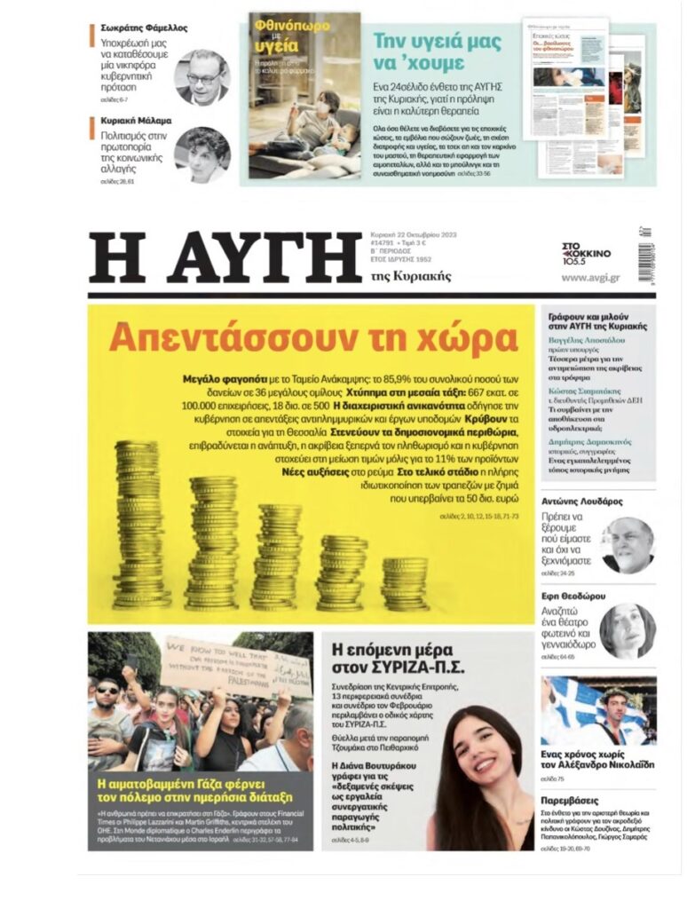 Διαβάστε τα πρωτοσέλιδα των εφημερίδων της Κυριακής 21 Οκτωβρίου.