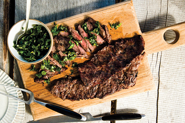 Ψήνουμε για 4-5 λεπτά από κάθε πλευρά, τις βγάζουμε και τις αφήνουμε 4 λεπτά να ηρεμήσουν. Κόβουμε τις μπριζόλες διαγώνια σε λεπτές φέτες και τις σερβίρουμε σε μεγάλη πιατέλα ή πλατό με τη συνοδεία της σάλτσας μαϊντανού.