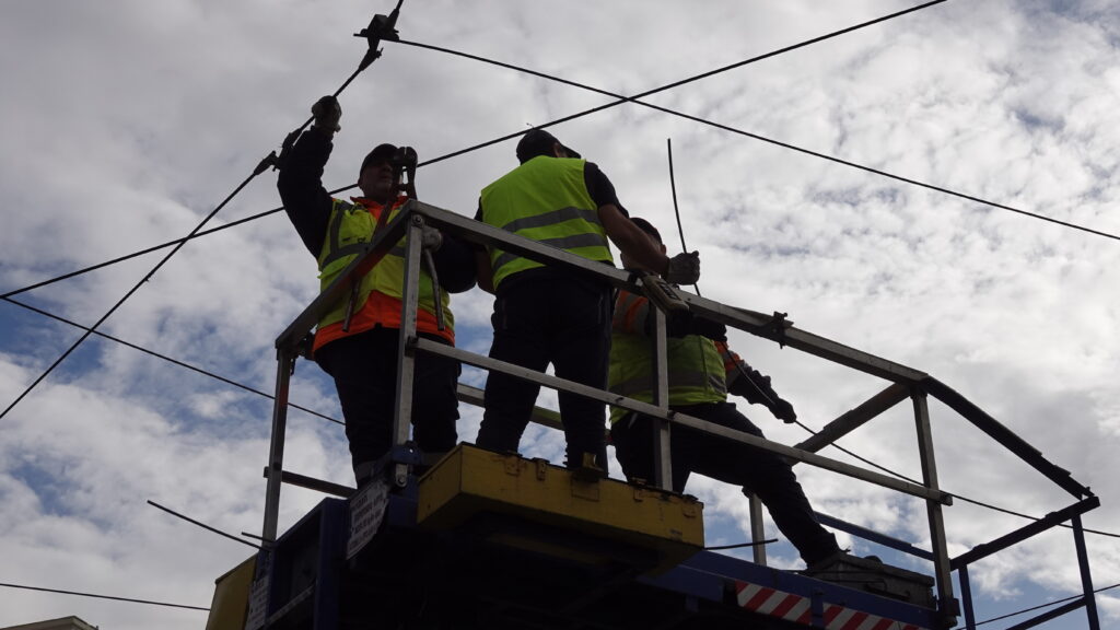 Οι εργασίες καθυστέρησαν καθώς είχαν συγκεντρωθεί οι εργαζόμενοι και αντιδρούσαν λέγοντας πως δεν υπήρχε λόγος να γίνει η αποξήλωση των καλωδίων ισχυριζόμενοι πως το κόστος δεν θα ήταν χαμηλότερο με τα νέα ηλεκτρικά λεωφορεία.