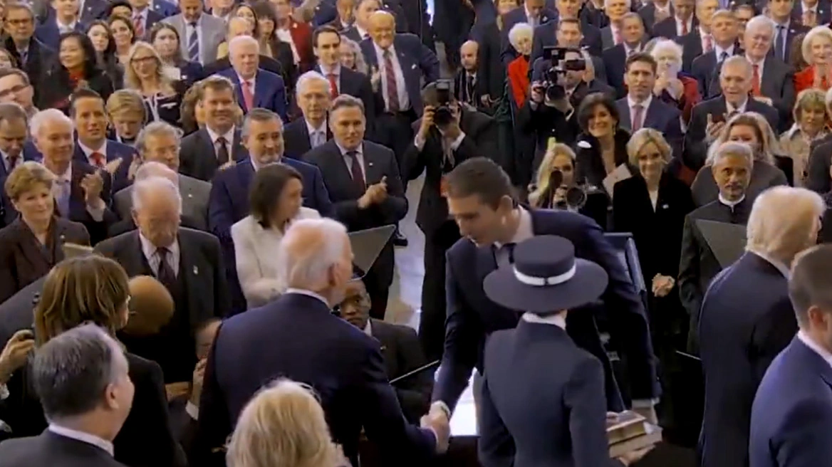 Τέλος οι παρερμηνείες: Τι ψιθύρισε τελικά ο Μπάρον Τραμπ στον Μπάιντεν στην ορκωμοσία του πατέρα του – Η στιγμή που έγινε viral