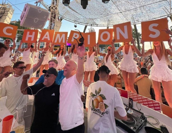 Ο προπονητής της Λίβερπουλ Άρνε Σλοτ γιόρτασε το πρωτάθλημα της ομάδας του, σε πάρτι στην Ίμπιζα.