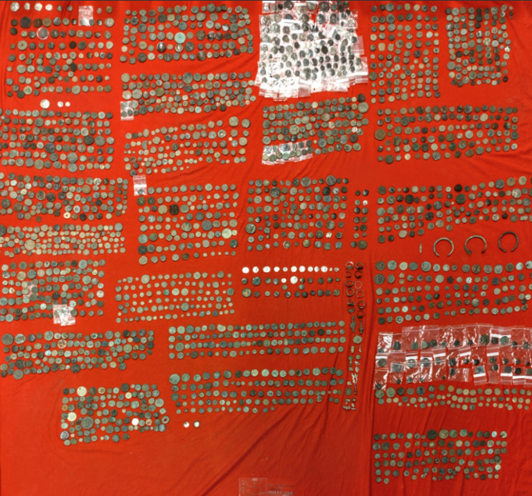Tα νομίσματα διαπιστώθηκε ότι προέρχονται από όλες τις εποχές νομισματικής κυκλοφορίας της αρχαιότητας, και ειδικότερα από την Κλασσική Εποχή.