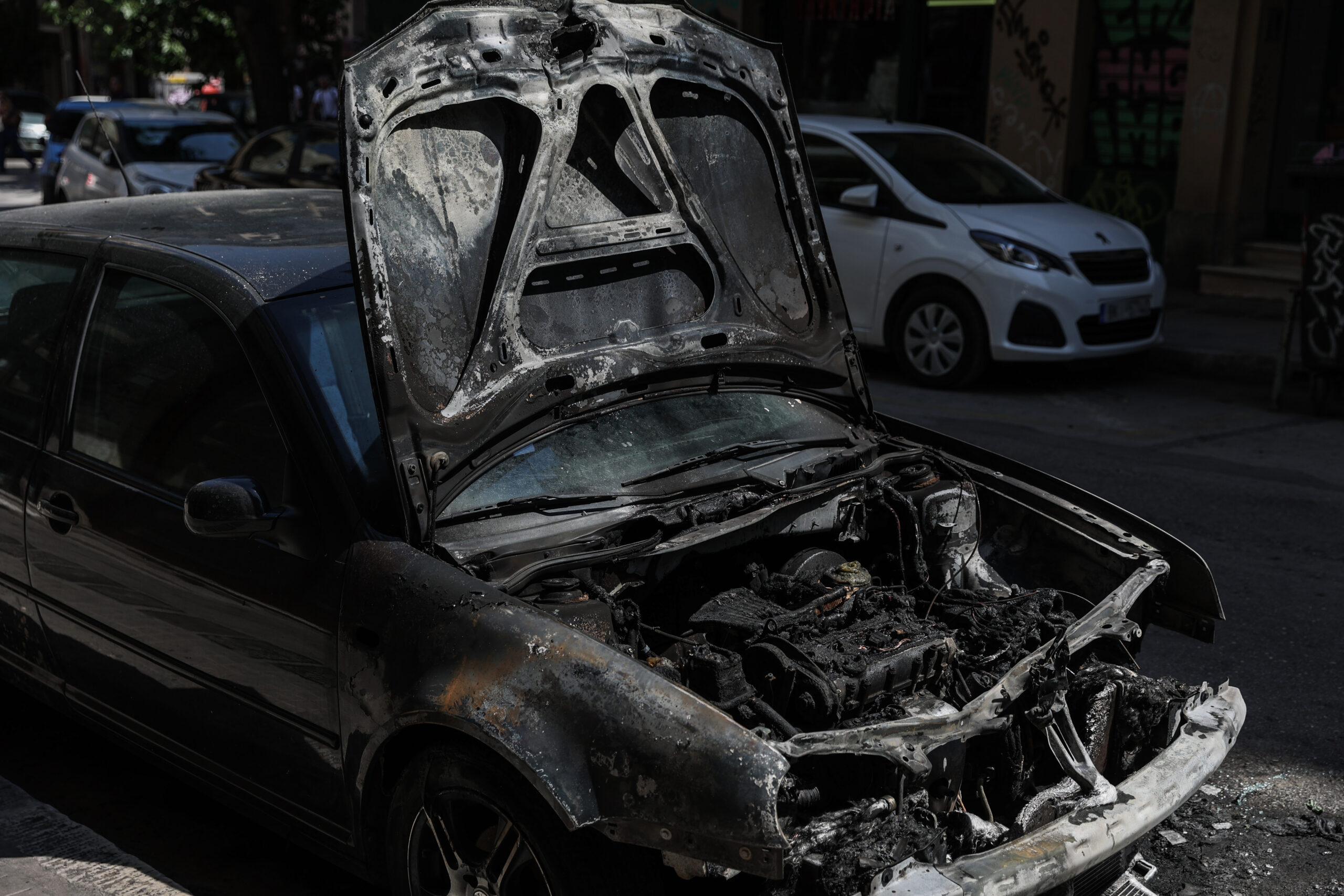 Το Ι.Χ. αυτοκίνητο κάηκε ολοσχερώς.