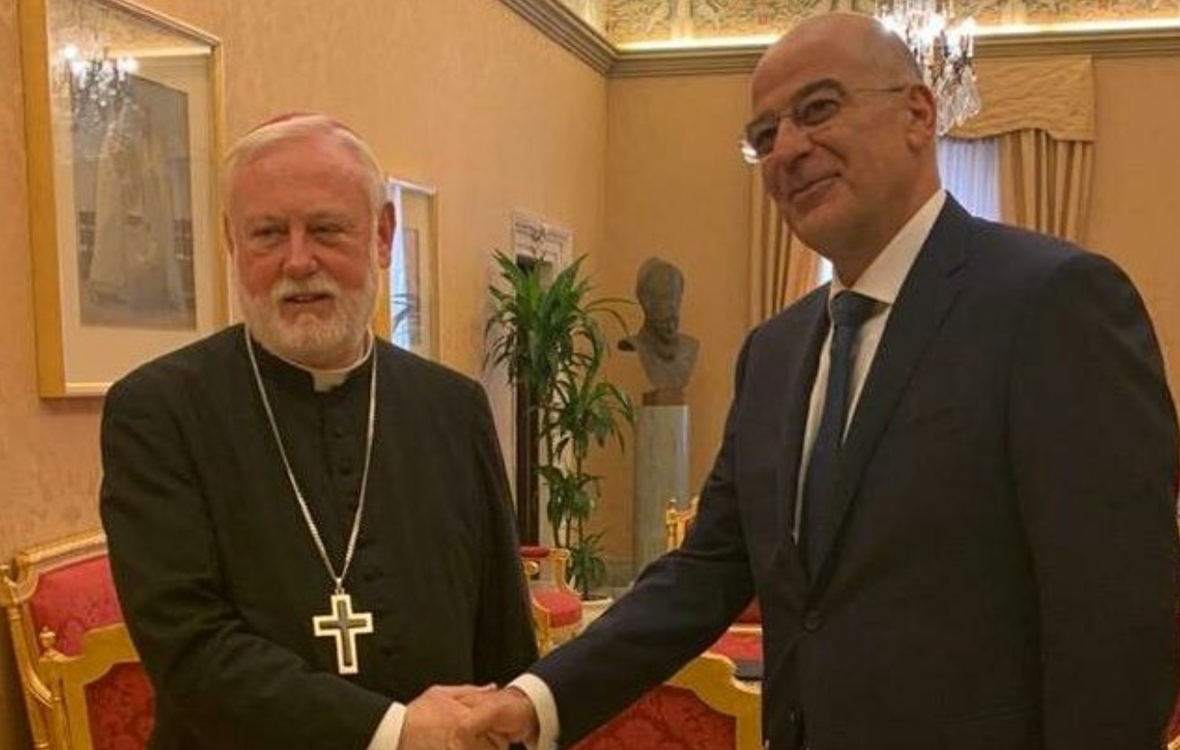 Τηλεφωνική επικοινωνία με τον υπουργό Εξωτερικών της Αγίας Έδρας Αρχιεπίσκοπο Πολ Ρίτσαρντ Γκάλαχερ (Paul Richard Gallagher) πραγματοποίησε ο υπουργός Εξωτερικών Νίκος Δένδιας.