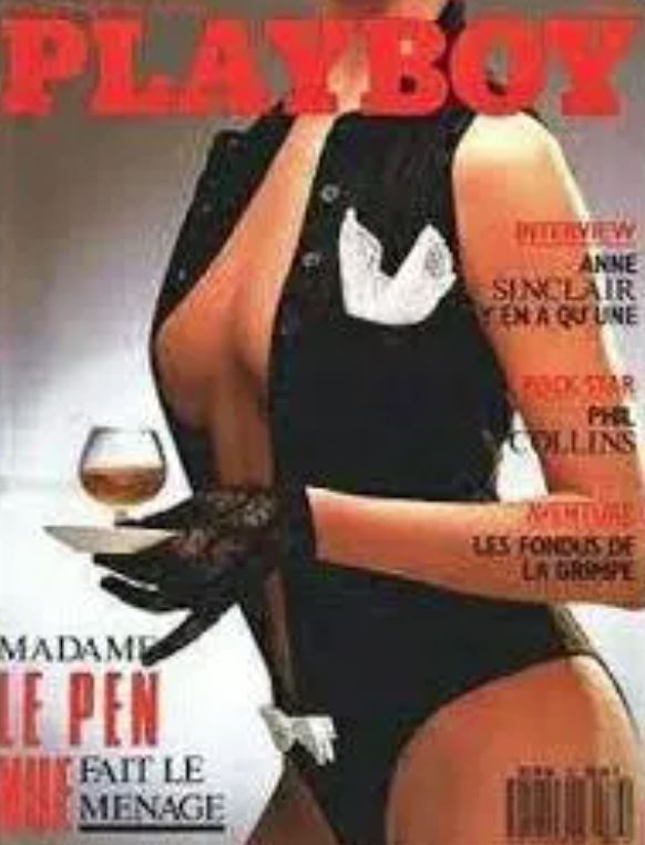 Το Γαλλικό Playboy είχε κυκλοφορήσει στο εξώφυλλο με τον τίτλο «Η κυρία Λεπέν κάνει γυμνή τις δουλειές του σπιτιού»..