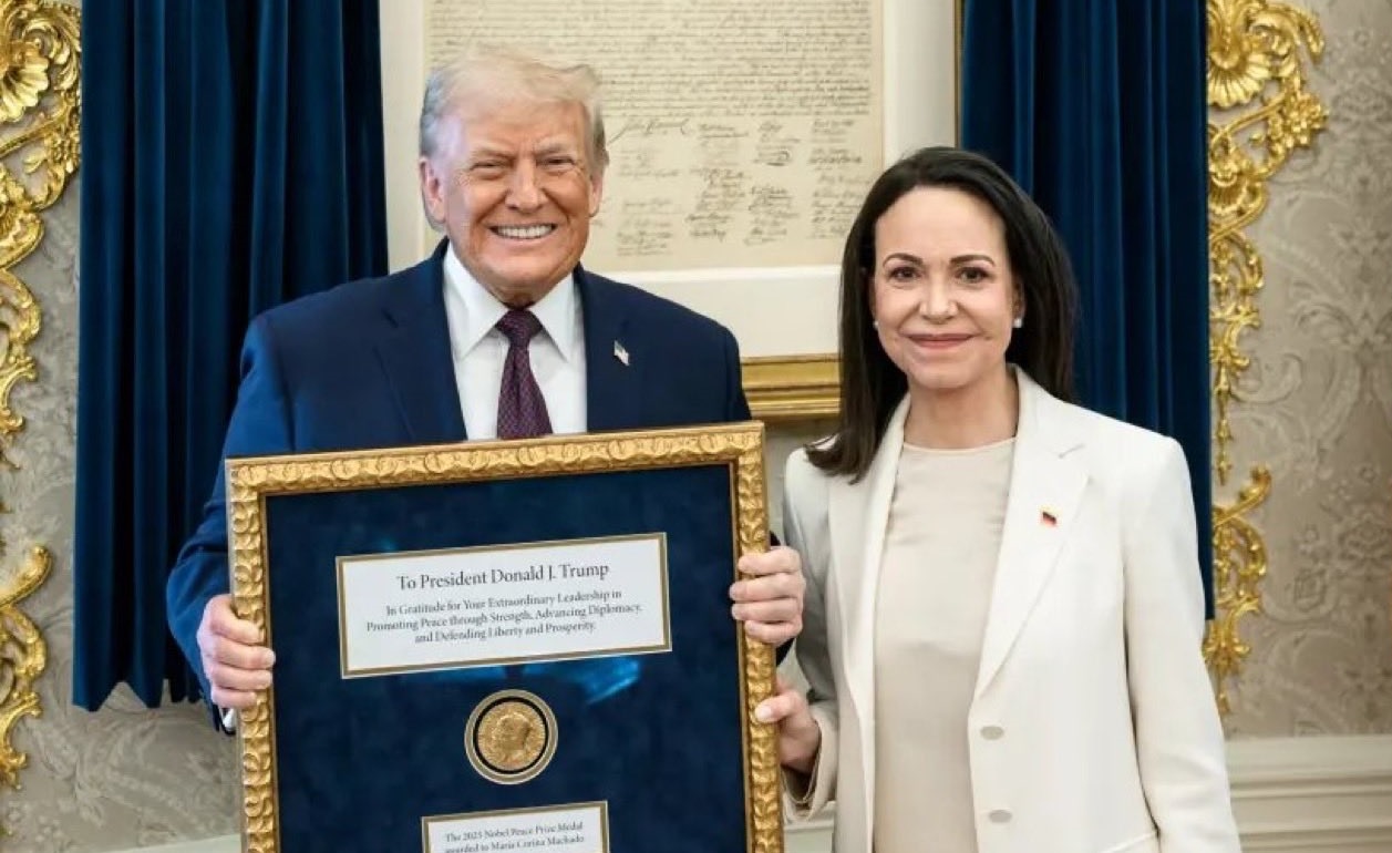 Με έντονο πολιτικό και συμβολικό φορτίο πραγματοποιήθηκε την Πέμπτη συνάντηση στον Λευκό Οίκο ανάμεσα στον Αμερικανό πρόεδρο Ντόναλντ Τραμπ και την ηγέτιδα της αντιπολίτευσης της Βενεζουέλας Μαρία Κορίνα Ματσάδο. Η Ματσάδο παρέδωσε στον Τραμπ το μετάλλιο του Νόμπελ Ειρήνης που της είχε απονεμηθεί τον περασμένο Δεκέμβριο, προκαλώντας διεθνείς αντιδράσεις και θεσμικά ερωτήματα.