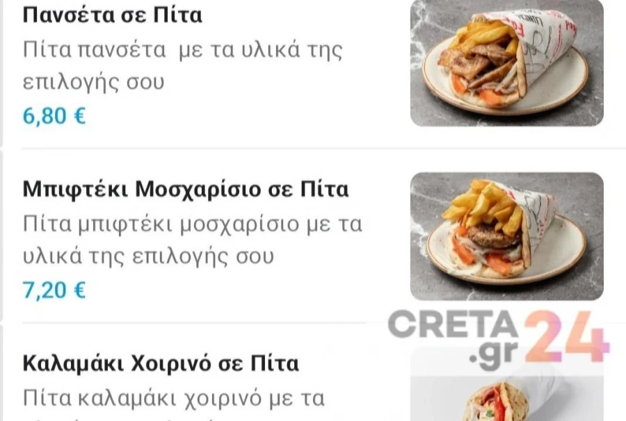 Έρευνα που πραγματοποίησε το κρητικό μέσο creta24.gr σε ηλεκτρονικές πλατφόρμες διανομής φαγητού αποκάλυψε ότι η τιμή του πιτόγυρου έχει εκτοξευθεί, κάνοντας τις εποχές που ένα τυλιχτό κόστιζε μόλις 2,50 ευρώ να φαίνονται πολύ μακρινές και χωρίς επιστροφή.