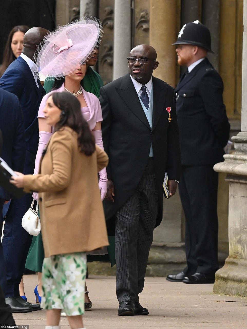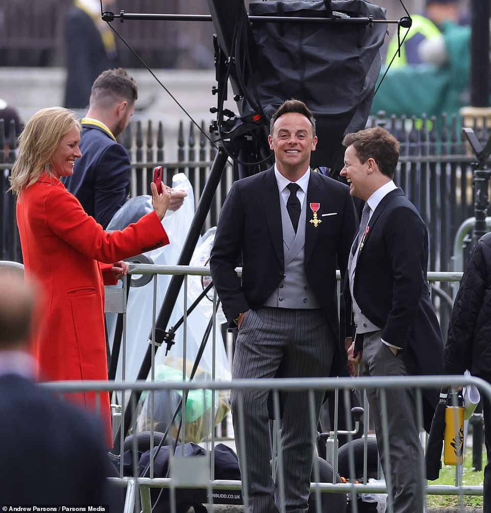Στο Αββαείο του Γουεστμίνστερ έφτασαν στις 12:53 ο βασιλιάς Κάρολος με την Καμίλα. Έξω από το Αββαείο τους υποδέχθηκε ο προκαθήμενος της Αγγλικανικής Εκκλησίας Αρχιεπίσκοπος του Καντέρμπερι Τζάστιν Γουέλμπι, ενώ μπαίνοντας τους συνόδευαν ο πρίγκιπας Γουίλιαμ με την Κέιτ Μίντλετον.