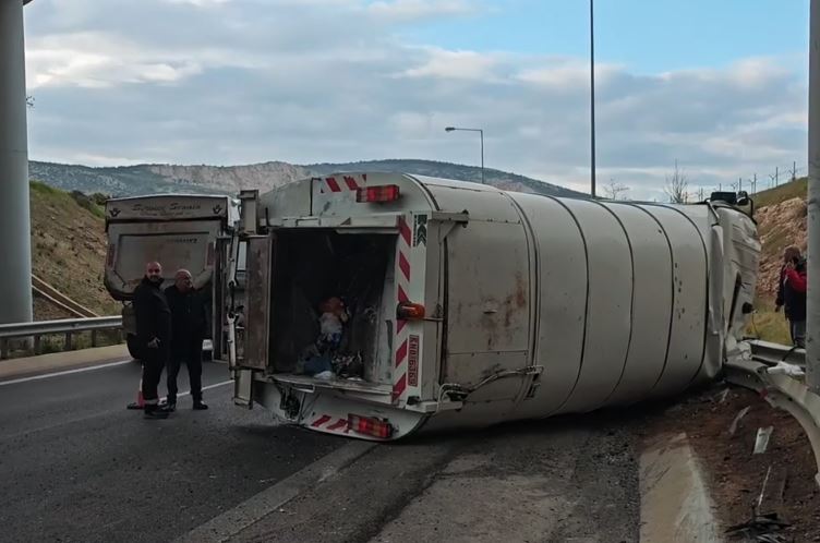 Εκτροπή απορριμματοφόρου στην Περιφερειακή Αιγάλεω – Ελαφρά τραυματίας ο οδηγός (Βίντεο)