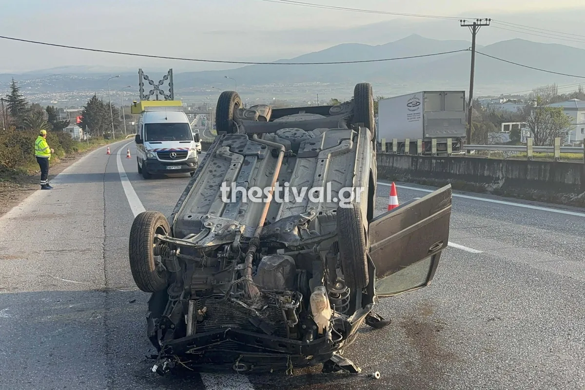 Θεσσαλονίκη: Ανατροπή αυτοκινήτου κάτω από την αερογέφυρα Σταυρούπολης