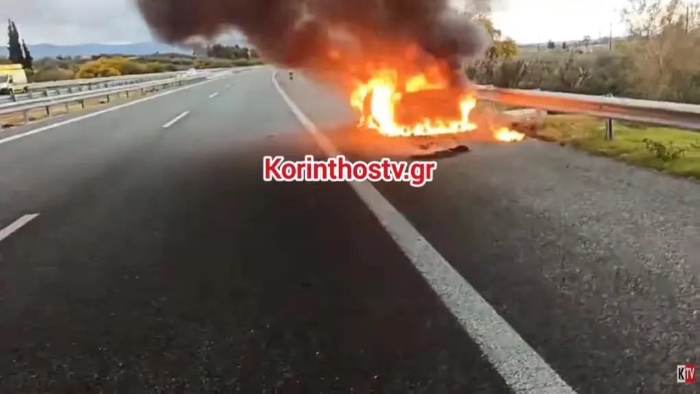 Φωτιά σε αυτοκίνητο στην Εθνική Οδό Κορίνθου – Πατρών (Βίντεο)