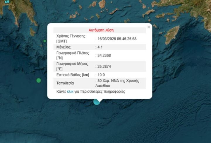Σεισμός 4,1 Ρίχτερ ανοιχτά της Κρήτης